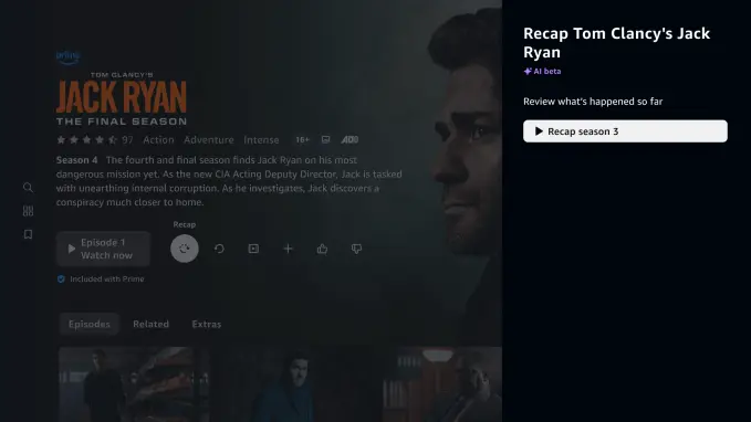 به‌گفته آمازون، این ویژگی «از هوش مصنوعی مولد برای ایجاد خلاصه‌های فصلی با کیفیت تئاتری، همراه با روایت همگام، دیالوگ و موسیقی استفاده می‌کند». این ویژگی به‌صورت نسخهٔ بتا برای برخی از برنامه‌های اصلی پرایم، مانند «Fallout»، «Jack Ryan اثر تام کلانی» و «Upload» از روز چهارشنبه در دسترس خواهد بود.